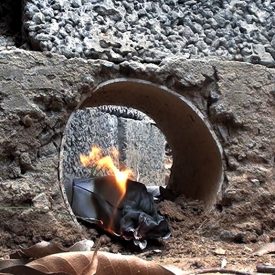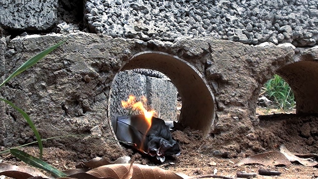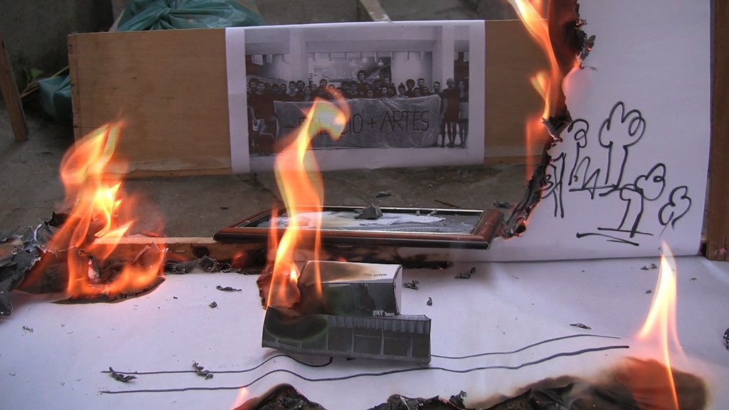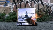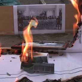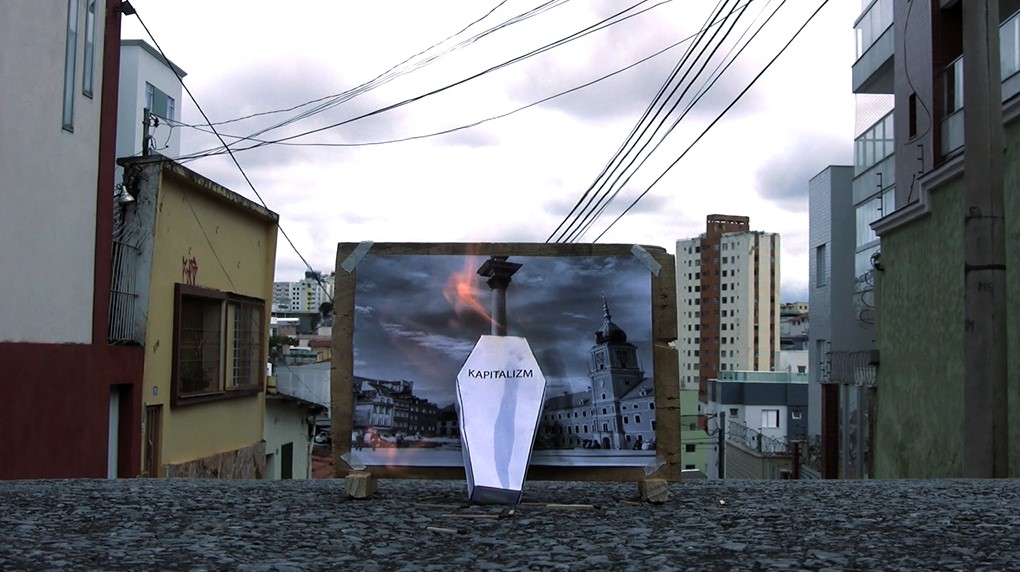 O trabalho apresenta uma série de esculturas em papel com imagens de lugares, instituições e ícones do mundo contemporâneo. Estas pequenas esculturas são exibidas ao ar livre, interagindo com o ambiente da cidade, e são queimados pelo artista. Ao mesmo tempo, lúdico e político, o trabalho relembra os jogos de crianças ou adolescentes na escola e ressoa ao mesmo tempo tempo com as lutas contra o capitalismo na Europa e no terceiro mundo.