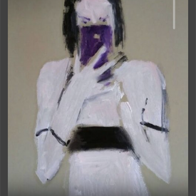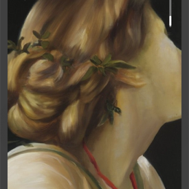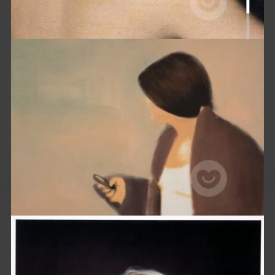 A grande Odalisca (detalhe), de Ingres (1814); Mulher olhando, de Miltos Manetas (2013); Betty, de Gerhard Richter (1988); Mulher com o brinco de pérola, de Johannes Vermeer (1665); Uma canção de estações, de Angela Fraleigh (2015); Assinatura, de Lucila Vilela (foto: Lela Martorano, 2020)