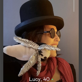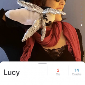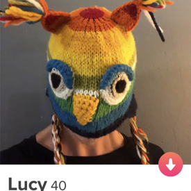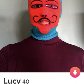 O perfil é sempre Lucy, 40. E a descrição: Entrando no jogo de imagens. Alguém me acompanha?