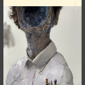 Sem título, de Miltos Manetas (2017); Escultura de David Altmejd (2019); Cem Monas, de Nelson Leiner (2012); Mulher saindo do psicanalista, de Remedios Varo (1960); A artista de micróbio (autorretrato em Baikinman( (2018); Assinatura, de Lucila Vilela (foto: Lela Martorano, 2020)