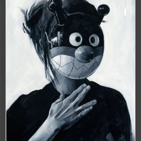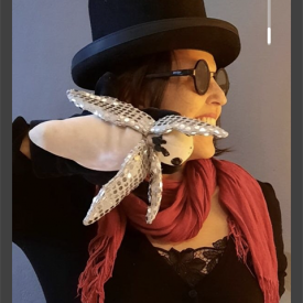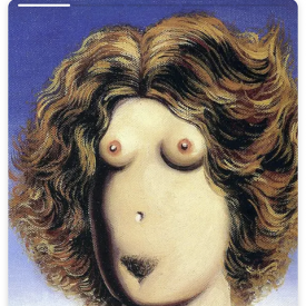Violação, de Rene Magritte (pintura/1935) | Autorretrato com máscara peruana I (fotografia/2020) | Autorretrato com máscara equatoriana (fotografia/2020)| Autorretrato com máscara peruana II (fotografia/2020) | Autorretrato com máscara colombiana (fotografia/2020) | Assinatura, de Lucila Vilela (foto: Lela Martorano, 2020)